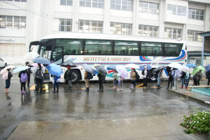 写真中…4年2組の出発