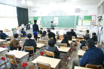 写真上…今日の「環境・JRC委員会」(5・6年生)の話し合いの様子です。