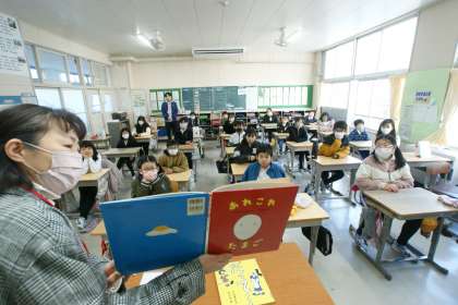 共働本部読み聞かせボランティア「本ずきん」さんに読んでいただいたのは、