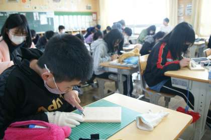 2月2日(金)6、今日の6年生 公開日 2024/02/02 更新日 2024/02/02 お知らせ 2月2日(金)6、今日の6年生の活動の様子です。 写真上…6年1組、図工「卒業制作」の学習です。 「オルゴールボックス」のふたの部分に装飾を施します。 指導者は教頭先生ですが…あれれっ? 一番後ろの席で黙々と内職しているのは、誰かな? 写真下…6年2組、体育「ボール運動」の学習です。 仲間とタグラグビーを愉しんでいます。 卒業までの登校日数は、あと30日となりました。 6年生 5678組 校長