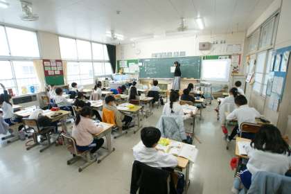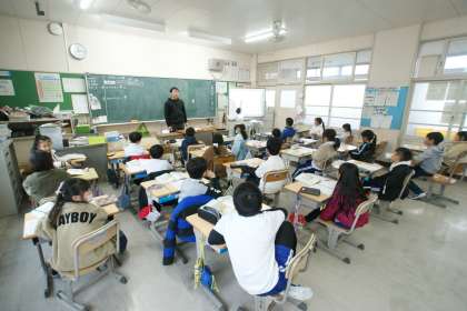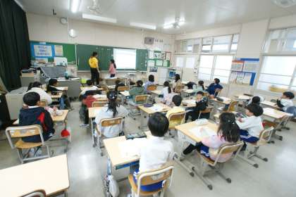 写真中…2年2組、算数「1000をこえる数」の学習です。