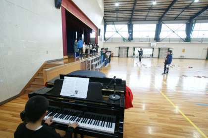 写真は「企画なかよし委員会」の「感謝の会」に向けての練習の様子です。