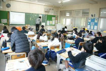 2月9日(金)3、今日の3年生 公開日 2024/02/09 更新日 2024/02/09 お知らせ 2月9日(金)3、今日の3年生の活動の様子です。 写真上…3年1組、体育「タグラグビー」の学習です。 試合に入る前に、パス練習をしています。 写真中…3年2組、国語「人をつつむ形」の学習です。 ものの見方や考え方をとらえる力を身につけます。 写真下…3年2組、体育「ポートボール」の学習です。 ※昨日の活動の様子です。 3年生 5678組 校長