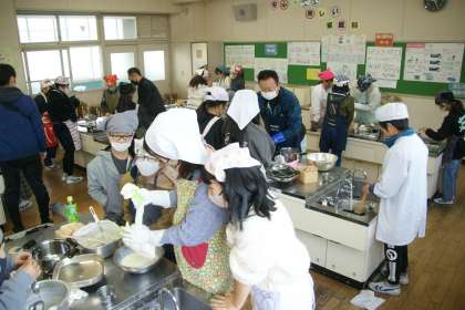 刻みネギや醤油、薬味を用意していただいた保護者の皆様、ありがとうございました。