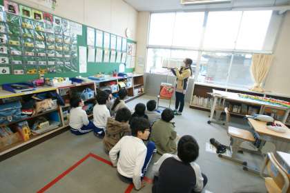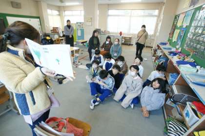 朝の会の後、地域学校共働本部ボランティア「本ずきん」さんによる絵本の読み聞かせがありました。