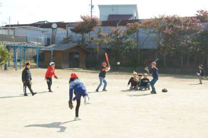 「大谷さん寄贈のグローブ」を使って、仲間と野球をしています。