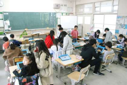 こちらの教室では、タブレットでいろんな穴を見つけています。