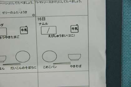 写真下…明日の給食は、人気ナンバー1の「やきそば」です。
