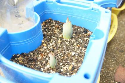 写真下…1年生がせっせと水やりをして育てている「チューリップ」です。