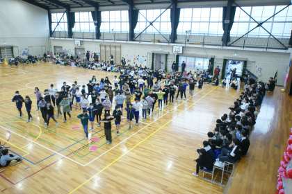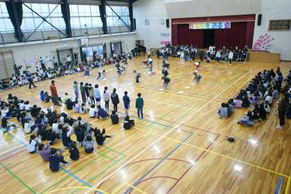 写真下…出し物の最後は、同じく運動会で披露した「おいでん踊り」です。