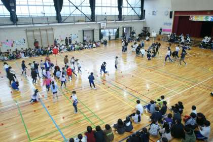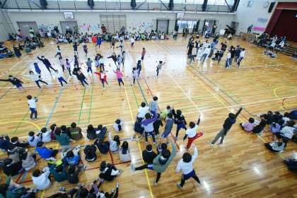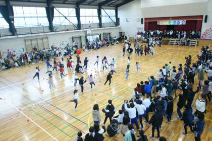 音楽がかかると、全校児童が総立ちで踊り始めます。