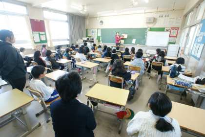 写真上…3年1組、絵本のタイトルは『ともだち ひきとりや』『あっ、ゴキブリだ』です。