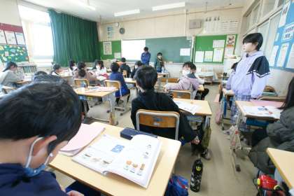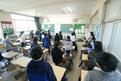 写真下…3年2組、理科「ものの重さ」の学習です。