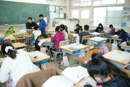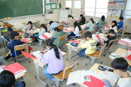 写真中…2年2組、国語「好きな場所を教えよう」の学習です。