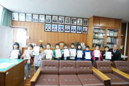 写真中…1年1組、『駒場賞』を授与したメンバーです。