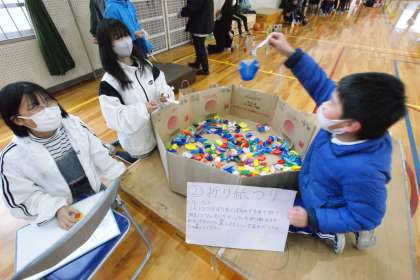 写真中…『折り紙つり』ゲームです。