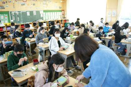 3月8日(金)6、今日の6年生 公開日 2024/03/08 更新日 2024/03/08 お知らせ 3月8日(金)6、今日の6年生の活動の様子です。 写真上…6年1組、図工「小物入れ」の学習です。 仕上げをしています。 写真中…6年2組、家庭科の学習です。 「内緒のものを仕上げています」(女児) 写真下…今日の卒業式練習です。 お辞儀の練習です。 6年生 5678組 校長