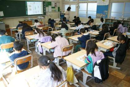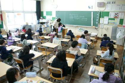 写真中…1年2組、御世話になった先生方に「お礼の手紙」を書いています。