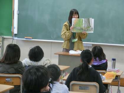 地域学校共働本部ボランティア「本ずきん」さんによる絵本の読み聞かせがありました。