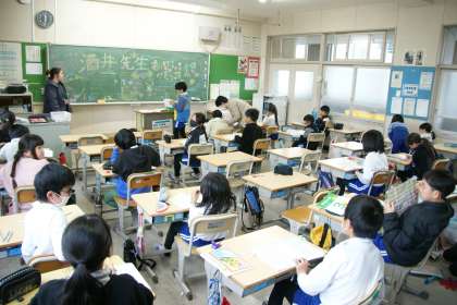 写真中・下…3年1組、学習のまとめをしています。