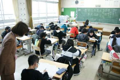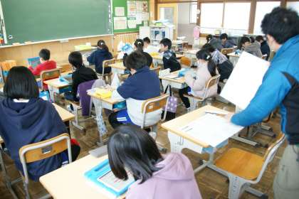 写真下…4年3組、国語の学習です。