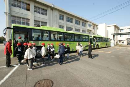 写真下…4年生は、「豊田市交通安全学習センター」に出かけました。