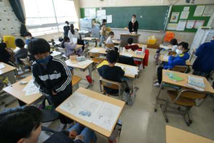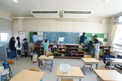 教室の掲示物を外したり、ロッカーの整頓をしています。