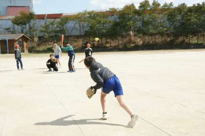 大谷さんグローブで、野球をしています。