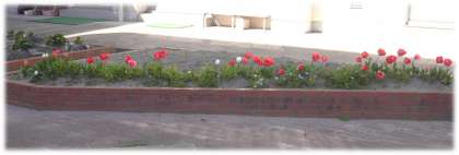 中庭のチューリップが風に揺れている様子は、まるでなかよしの子どもたちが肩を組み、歌を口ずさんでいるかのようです。