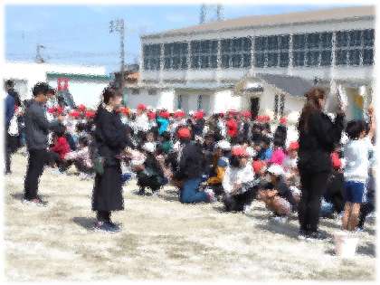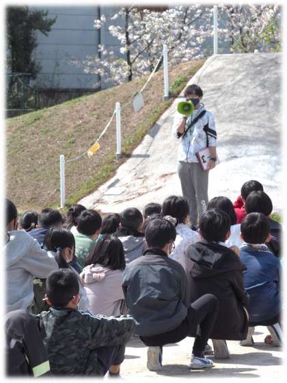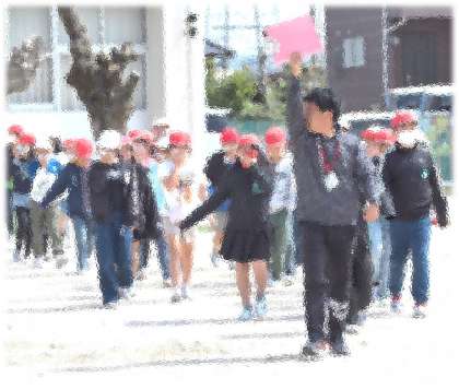 2校時、今年度最初の避難訓練を行いました。今回は、「家庭科室からの火災発生」を想定した避難です。教頭の放送による避難指示で、「お・は・し・も」を意識し、煙をすわないように、口と鼻をハンカチなどでおおって、静かに避難する子どもたち。特に、6年生が真剣な雰囲気を自分たちでつくり、あとに続く学年も真剣にのぞむ姿が立派でした。