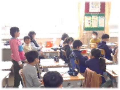 自分の考えを伝えるときに、伝えたい相手である学級の仲間に体をしっかり向けて話す姿。(4年生すてき!)