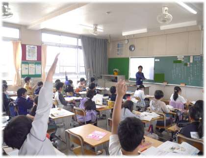 「こわれた千の楽器」の学習です。音読の表現につなげていくために、まずは初めて読んだ感想交流を行っていました。それぞれに感じたことを自分の言葉で仲間に伝えていく姿に、これまでの3年間の積み上げと、4年生になってがんばるぞという意気込みも伝わってくるさわやかな姿でした。