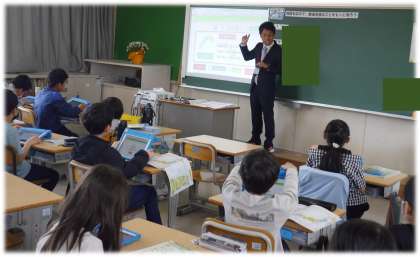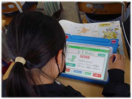 4月13日(土)今年度最初の授業参観への参観ありがとうございました5 公開日 2024/04/13 更新日 2024/04/13 各学年から 4年生です。社会科の授業でした。学習用タブレット内のアプリを活用して、県名クイズに自分のペースで取り組みます。間違えても、そこから学び直しができます。そして、その都道府県のとくちょうを知ることもできます。 4年生