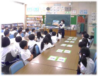 4月17日(水)1年生 国語科の授業の様子 公開日 2024/04/17 更新日 2024/04/17 各学年から 入学して初めて入る図書室。大きな机があったり、たくさんの本が置いてあったりして、入った瞬間からわくわくどきどき。今日は、学校図書館司書さんから、図書室がどんなところかや、本をかりるときの約束などを学びました。 小学校6年間で、たくさんの本と出会い、楽しみ、自分の中の新しい世界を広げる「あいぼう」として図書室をどんどん利用していけるとすてきです。 1年生