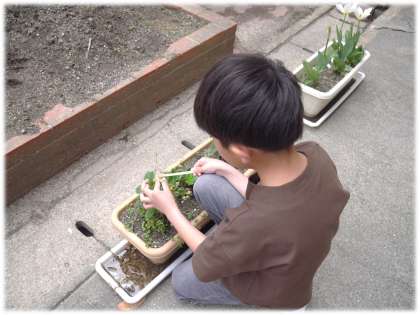 自分たちで大切にお世話しているからこそ、日々の変化にも気づき、生長を楽しむ子どもたちです。