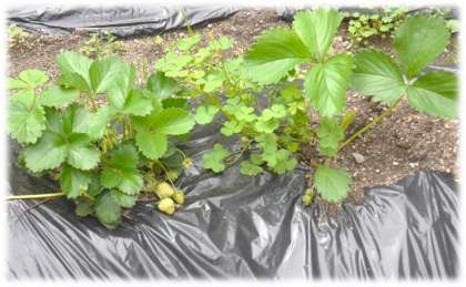 6組の前の畑には、いちごが植えられています。子どもたちが休み時間を使って大切にお世話をしています。