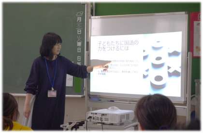 今日は、先生役と子ども役に分かれて、実際に1時間の国語科の授業を考えていきました。先生役を務めた教員の経験値からくる「子どもたちに国語の力をつけるために」大切な視点の話を聞きながら、どの教員も自分の学級の子どもたちの顔を思い浮かべたに違いありません。