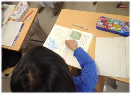 今日は、音読に生かすために、様子がよく分かることばを学級のみんなで見つける授業でした。