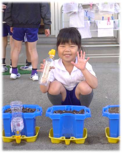 「種から芽が出るまでそのお水が食事だね。おいしいって、よろこんでいると思うよ」
