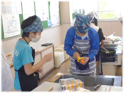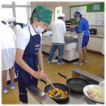 5月10日(金)6年生 家庭科の授業の様子 公開日 2024/05/10 更新日 2024/05/10 各学年から 自分オリジナルの野菜炒めの調理実習に挑戦です。 野菜やソーセージなどの具材を切るところから、すべて一人で行います。 「玉ねぎを切るのが、思ったより難しかった〜」など、実際に自分でやるからこそ分かることがありますね。 家庭科室だけではなく、校舎全体がおいしそうな香りに包まれました。 ぜひ、次は家族に自分オリジナルの野菜炒めを食べてもらいたいですね。 6年生