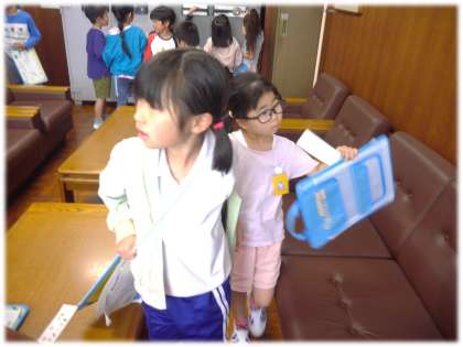 「2年〇組の□□です。学校探検で来ました。失礼します」