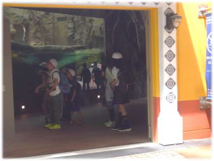 北門を入ってすぐ、柵越しに巨大なバイソンがお出迎え。その大きさに子どもたちは目が釘付けです。