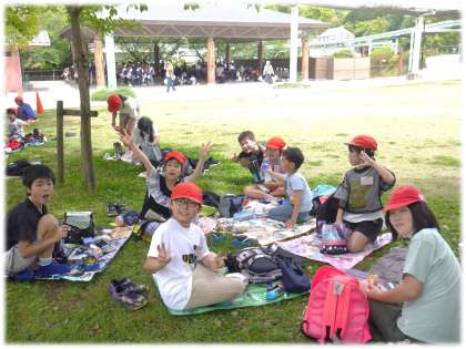 5月15日(水)なかよし遠足5 公開日 2024/05/15 更新日 2024/05/15 学校行事 そして、子どもたちが楽しみにしていたお弁当タイムです。 それぞれの班が、日差しをよけながら、楽しそうに、そして何よりうれしそうにご家庭で準備いただけたお弁当を食べていました。 みんな、すてきな笑顔です! お弁当の準備、ありがとうございました。 1年生 2年生 3年生 4年生 5年生 6年生 5678組 行事