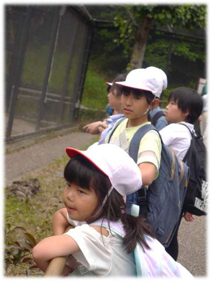 帰りのバスのなかでの振り返りでは、実際に見ることができてうれしかった動物たちの名前がたくさん挙がりました。そして、こうした楽しい時間を過ごすことができたのも6年生や5年生ががんばってくれたからだと、「ありがとう」のことばが飛び交いました。また、そうした高学年の呼びかけに応えることができた「自分自身」もがんばったねと、ファミリーの先生から話もあり、子どもたちはうれしそうでした。