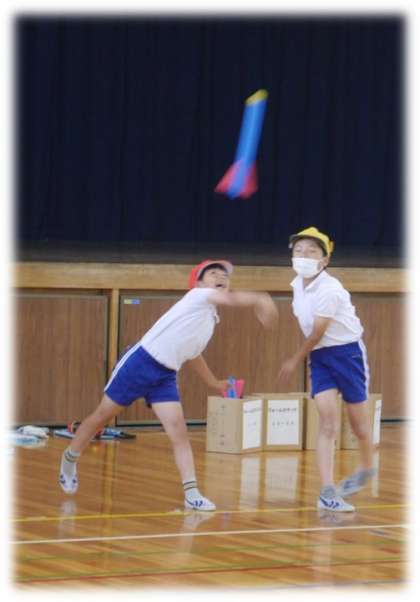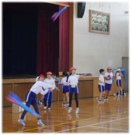 すぐに体育館の床についてしまうときには、「腕の伸ばし方かな」と友達同士で教えあいながら、熱心に練習に取り組んでいました。
