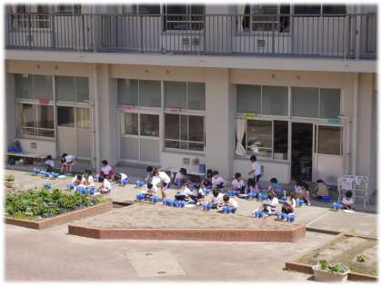 自分のアサガオをじっくりとながめ、土からどのように芽が伸びているのか、葉っぱの形はどのようになっているのかなど、発見したことをもとに、生活ノートにスケッチをしていました。