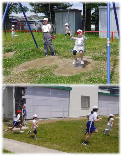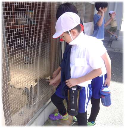 晴天に恵まれた今日、元気タイムには運動場で元気に体を動かす子どもたちがたくさんいました。なかには、学年関係なく、一緒に遊ぶ姿も見られます。この時間に、モコに会いに行く子どもたちもいます。モコもそのことが分かっているのか、触ることができる場所まで出てきています。