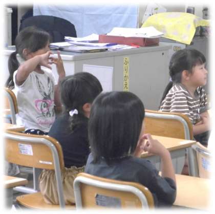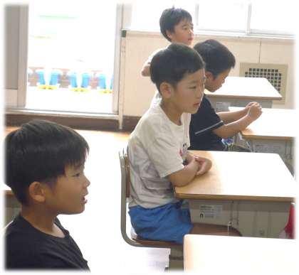 声に出す場面でも、いろいろとパターンを変えて、楽しみながら練習に取り組む1年生です。