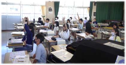 バイオリン、ビオラ、チェロ、コントラバスについて、その音色の音程や大きさで、合唱のパート別であるソプラノ、アルト、テノール、バスに例えて整理していました。仲間の気づきに、みんなからも「なるほど〜」というつぶやきが聞こえてきます。