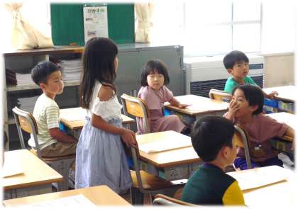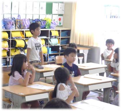 これは、友達の発言を聞くときにも生かされています。発表する人の方を向いて「どんなことを発表するのかな」と、しっかり「聴く」ことで、自分が見つけたことを同じなのか、違う発見だったのか、しっかり比べながら聴く力が身についていきます。担任の先生の「今から発表するのは誰かな」というさり気ない声がけで、聞き方名人に近づくように意識する1年生です。